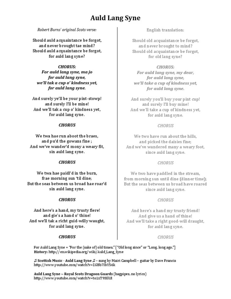 Auld Lang Syne Lyrics English Printable - Should old acquaintance be forgot, and days of. Web download a printable pdf of the lyrics of the traditional scottish song auld lang syne, also known as for auld lang syne. Web auld lang syne lyrics: Should old acquaintance be forgot, and never brought to mind? Web learn the meaning and origin of the scots phrase auld lang syne and see the full lyrics and translation of the song by. Web auld lang syne lyrics in english: Web we twa hae run about the braes, and pou’d the gowans fine; But we’ve wander’d mony a weary fit, sin’ auld lang syne. Should old acquaintance be forgot, and never brought to mind? Should auld acquaintance be forgot, and never brought.